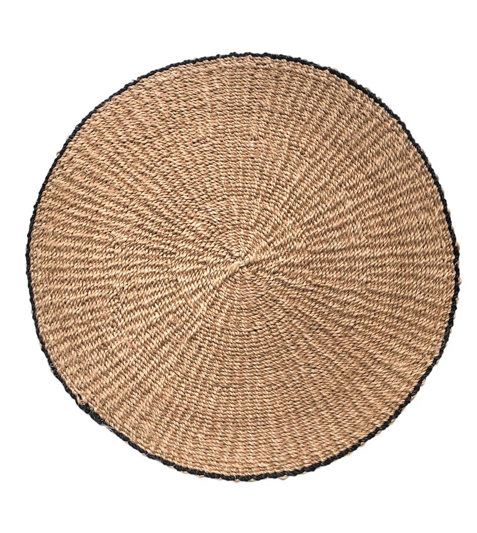 set rond 2 tons compo : 100% sisal origine: fait main au KENYA couleur : thé bord noir