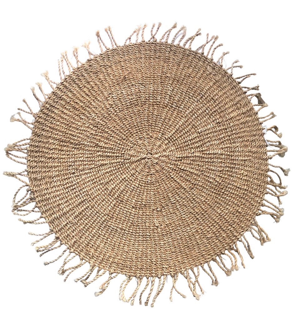 set Soleil thé rond sisal compo : 100% sisal origine : fait main au KENYA dimension : 34 cm sans les franges 40 cm avec les franges réapprovisionnement possible
